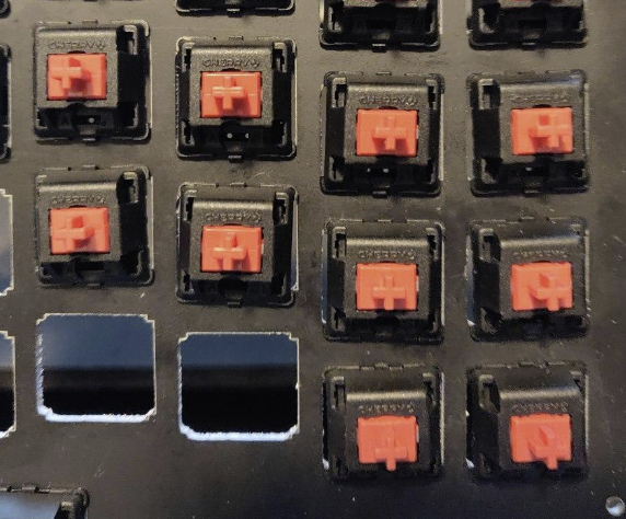 The other issue is that the corners of the switch cutouts are rounded (due to the milling process), which has caused issues with switches being skewed. This can be resolved in a couple of ways, like removing Alps compatibility or compensating for the rounded corner, but given the first issue mentioned with the marks on the plates, aluminum will be going away.