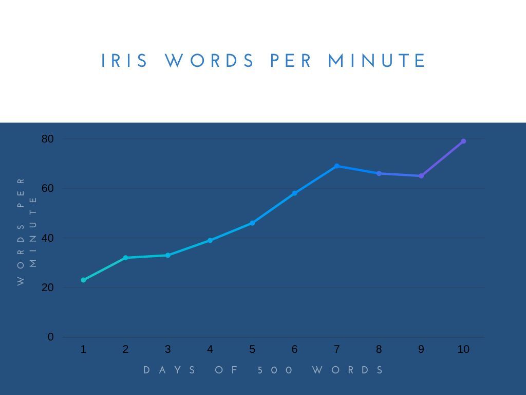After a few typing tests, I started to get a feel for what letters were giving me the most trouble. Six days of typing 500 words on the Iris a day and I was mostly back up to my WPM. I was still about 20 WPM off, as I'm normally about 85 WPM.