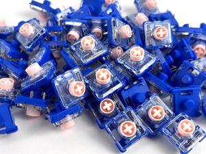 The Red is the only linear in the lineup - no tactile bump, no click, just a smooth and consistent keystroke from top to bottom. Like the Banana, it uses a PC top housing and nylon bottom with a POM stem, making it RGB-friendly and the same price at $0.25 per switch.
