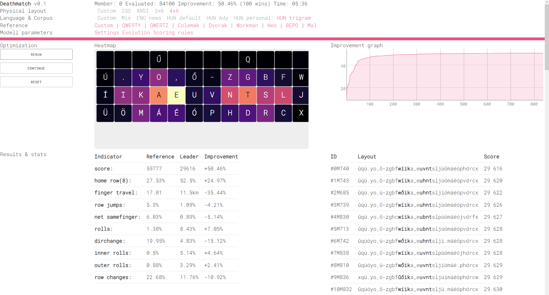 Discovering this subculture convinced me to try alternative layouts – first on a cheap rubberdome. I found a thesis on adapting the concept behind Dvorak for my local language, wrote some scripts to optimize my logical layout, and implemented a custom layout via AutoHotKey and PKL. In addition, I also tried out the SpaceFN concept (turning your spacebar into a modifier) via TouchCursor.