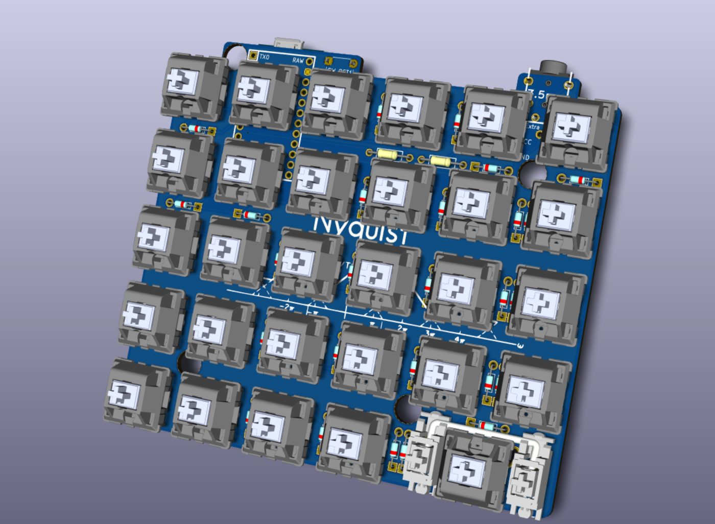 One guy on the Mechkeys Discord wanted to build a macropad using only one side of the Nyquist, but wanted to have an additional 2u key in the other lower corner. I decided to help him out and add 2u support for that corner and after moving around a few traces, I ended up with Version 1.2 and ordered 200 PCBs.