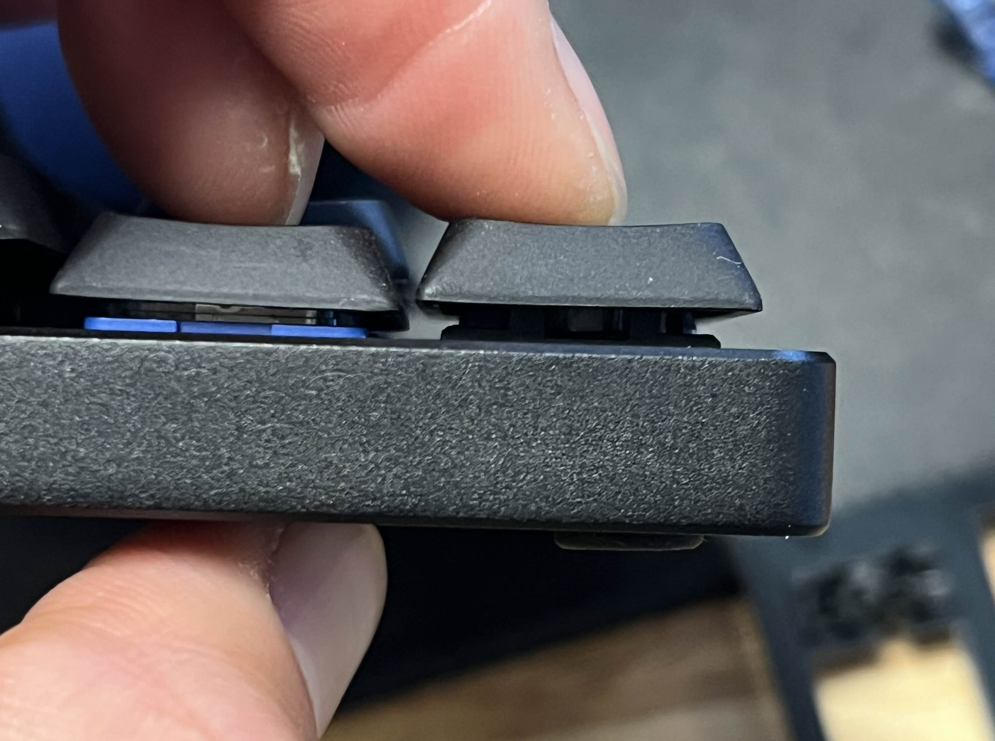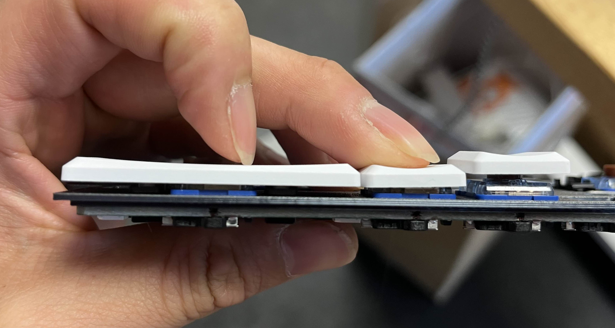 One of the main holdups with the Demod LM and Quefrency LM projects was with the use of low-profile stabilizers. Originally, they were designed for use with Gateron Low-Profile stabilizers. However, once we got to testing with the prototype cases and PCBs, we realized that the travel on the Gateron stabilizers is reduced, and the stabilized keys do not go all the way down.