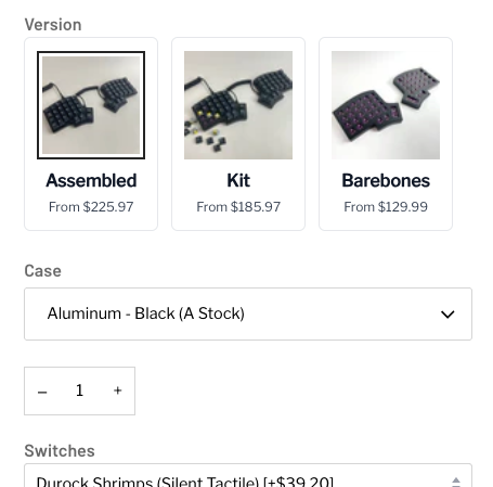 In short, you'll see "Pre-built" get replaced with "Assembled", and the other two options will be "Kit" and "Barebones." The premise behind Assembled and Kit is that when you open the box, you'll have everything you need, like switches, keycaps, case, and PCB. The Barebones option lets you bring in your own choice of switches and/or keycaps if you don't want to purchase our offerings. The end goal is to make things less confusing for those with little keyboard building experience.